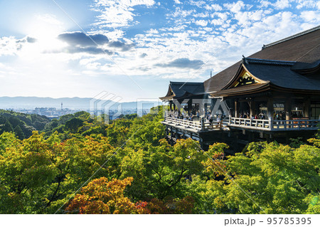 京都城市景觀、祗園/東山區、清水寺、音羽瀑布、對角線左角