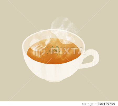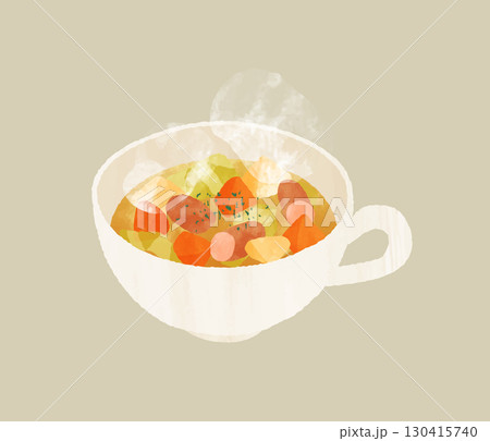 清湯(蔬菜湯)和木製餐具 烹飪和食物手繪水彩插畫素材