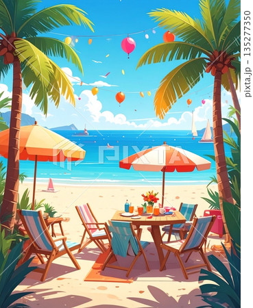 illustration of happy sunny summer day at beach
