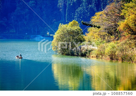 11月初,剛過中午,從只見線隼人站眺望無限峽渡輪的秋景(福島縣三島町)