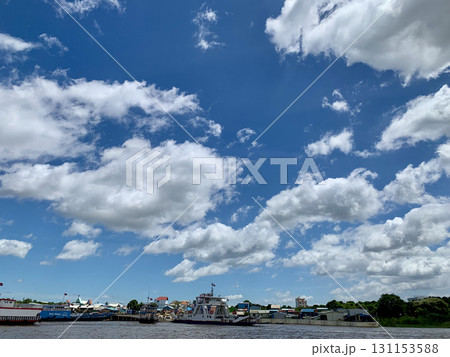 從柬埔寨金邊渡輪碼頭拍攝的城市景觀和水上交通