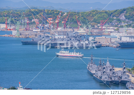 岡山縣瀨戶內市,夏季,從牛窗橄欖園看到進入牛窗港的前島丸