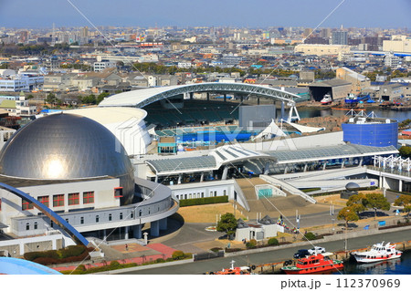 名古屋市:從名古屋港大樓看到的名古屋港水族館全景