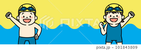 一個對游泳有信心的孩子的插圖 游泳學校 簡單