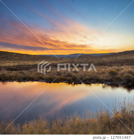 Typical landscape during sunrise in Parc Naturel regional de Camargue, Provence, France
