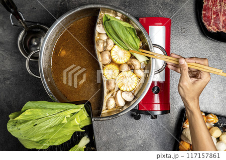 Chinese vegetable stew with tofu or mixture of vegetables soup