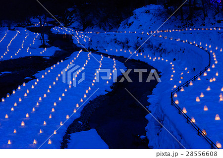 日光市湯西川溫泉湯西川澤口河床上,燈火通明的迷你鎌倉