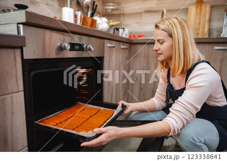 Baking delicious treats in a cozy modern kitchen during the afternoon