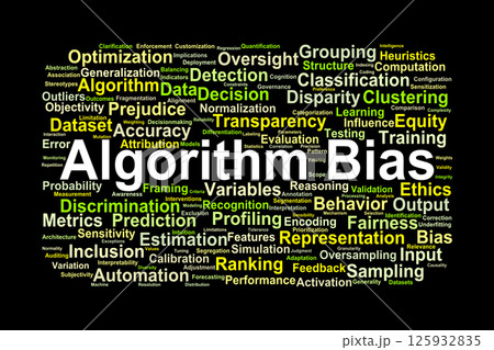 Algorithm Bias Word Cloud. Key Concepts in Data and Ethical Implications