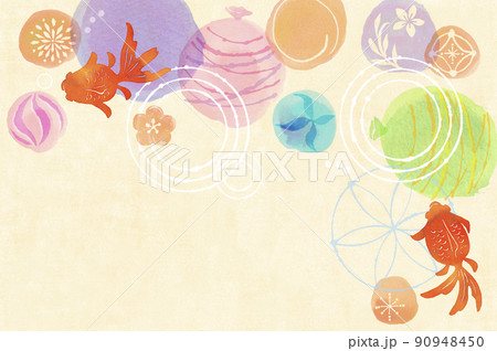 金魚、漣漪、悠悠球和大理石的彩色日本圖像圖案,似乎是夏天。