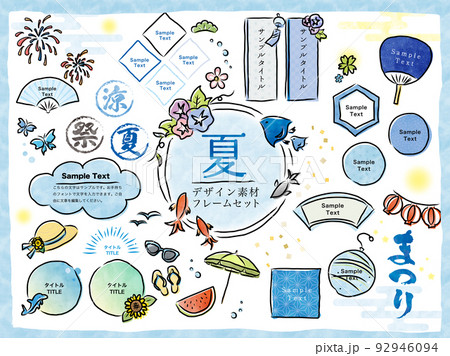 金魚、漣漪、溜溜球和彈珠的夏日色彩繽紛的日本形像圖案