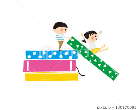 孩子們在玩滑梯,手裡拿著一本大書,女孩在溜滑梯上