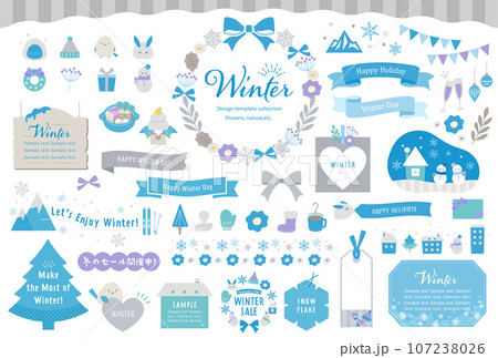 冬季插圖和框架集/裝飾品、雪、水晶、自然、裝飾框架、標題、向量