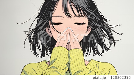 花粉症季節(過敏、過敏性鼻炎、鼻炎)女孩擤鼻涕