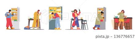 Indulging In Late-night Snacking, Characters Satisfy Their Cravings In The Late Hours, Seeking Food in Open Fridge