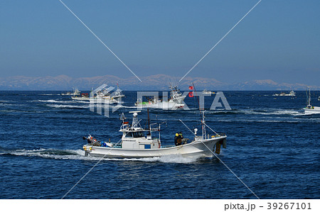 宮城縣氣仙沼港雪船繫泊、繫泊船舶海水面海面反射陰天戶外觀光機