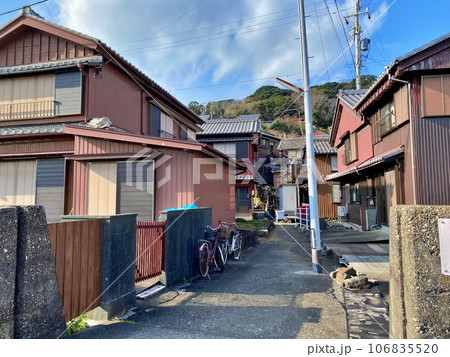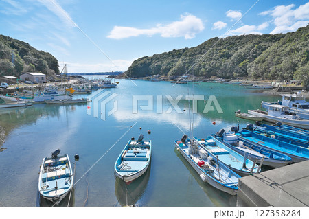 釣魚船按順序停泊的漁夫鎮,內田真田,富邑市,富山縣