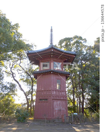 神社的朱紅色天花板