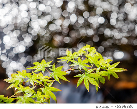 情趣泉門鎮周邊風景:晨曦照耀下的水面和鮮綠的楓葉
