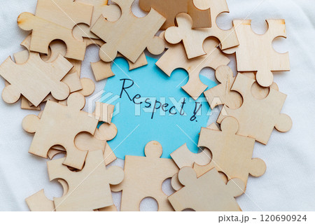 Promoting business values respect through puzzle pieces in a creative workspace indoor setting inspirational concept