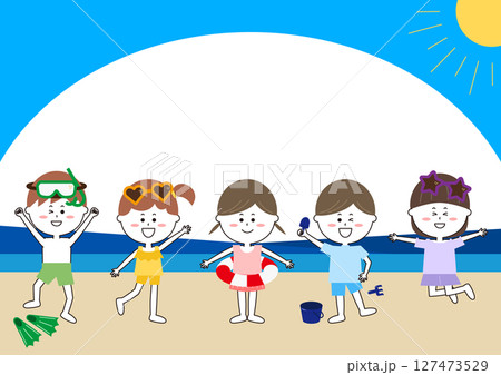 夏季賀卡插圖,描繪了一個在大海背景下享受浮潛的女孩