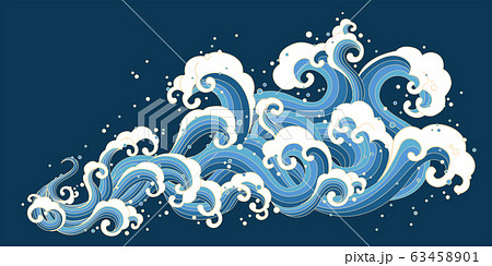 Abstract dynamic ocean waves pattern in various shades of blue and white