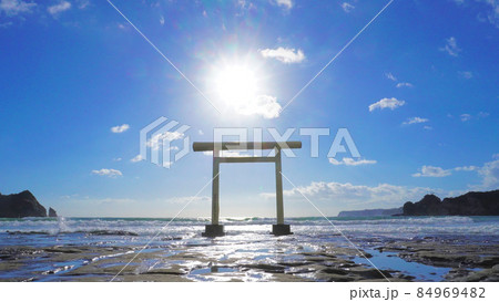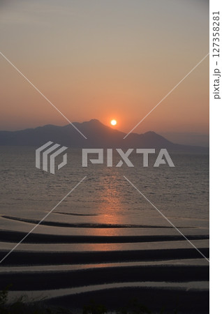 Oshikiki海岸,沙灘潮汐的日落美景(Uto Peninsula北岸/ Shimodami鎮,Uto市,熊本縣)