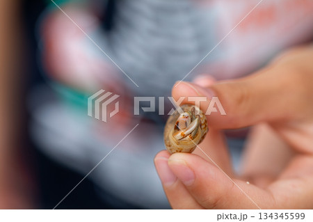棲息在小貝殼中的寄居蟹