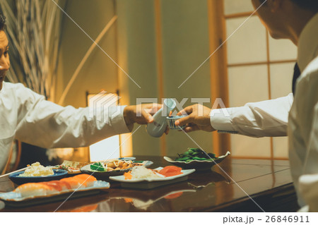 清酒圖像 清酒瓶和 choko 清酒套裝