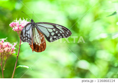神秘的旅行蝴蝶淺木斑飛來(沐浴在陽光下的藤葉花上的蝴蝶)阿蘇九重花卉公園(大分縣)