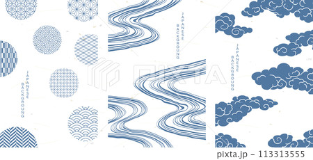 傳統日式圖案背景素材。日式圖案素材。流水紋,流水,水。
