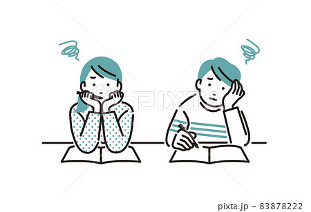 一個學習成績好的女高中生和一個努力奮鬥的女高中生 簡單可愛的線描插圖