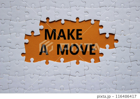 Make a Move symbol. Concept word Make a Move on white puzzle. Beautiful orange background. Business and Make a Move concept. Copy space
