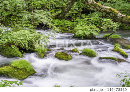 青森縣十和田市石角之莊夏季的奧入瀨溪流