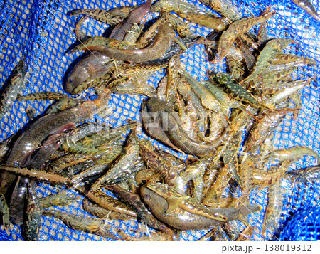涉水捕撈蝦虎魚和河蝦。