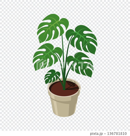 Isometric potted plant. Indoor plant. Green plant in pot. 3d potted plant for home interior decoration. Interior decoration element