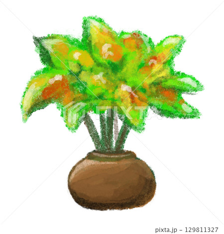 Potted plant with large, vibrant green leaf isolated artistic illustration