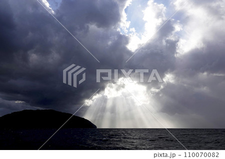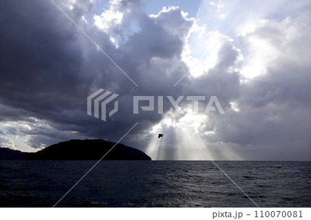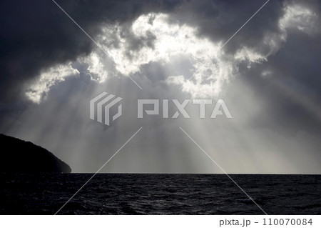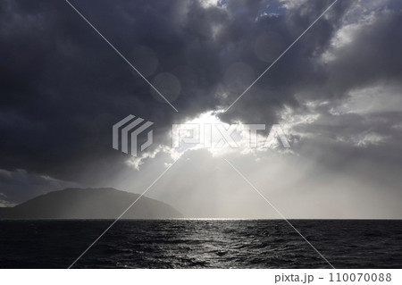 湖上的碼頭,陽光透過雨雲的縫隙照射進來