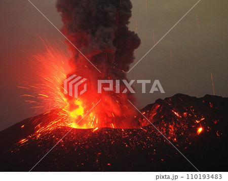 櫻島的觀光景點積水展望廣場、尖叫的肖像