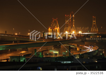 從橫濱大山橋看到的海灣大橋和橫濱港的黎明
