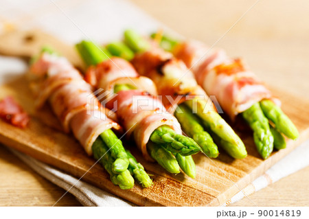 Delicious fresh pancetta or bacon with salt and spices cut into thin slices