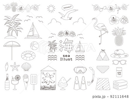 插圖素材夏季圖標集熱帶海灘季節矢量