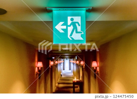 飯店走廊上的緊急出口標誌