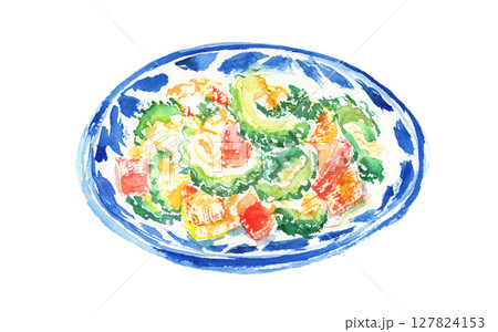 Goya Chanpuru 的水彩插圖 - 傳統的沖繩炒菜