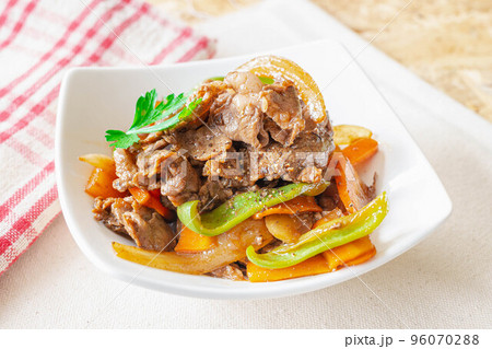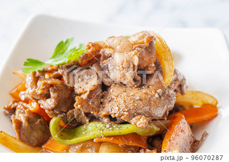 [用醬油炸茄子。把炒好的茄子裝盤]