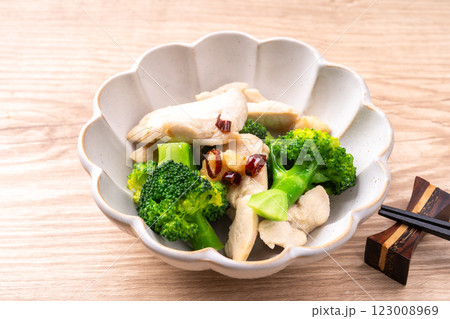 Cod with mashed potatoes, zucchini grill and sauce on the light background. European cuisine. The