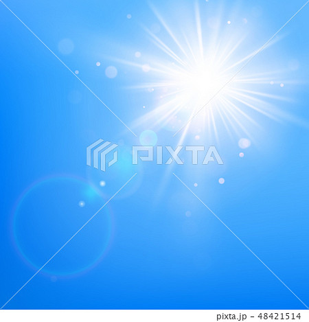 Summer blue sky template and hot summer sun rays burst with lens flare. EPS 10