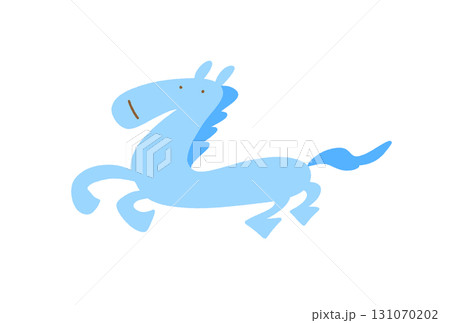 手繪淡藍色奔馬人物2026年新年素材