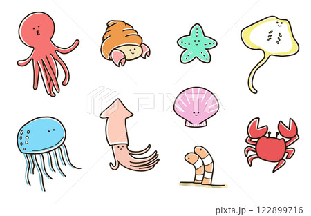 夏天的形象 南部島嶼、鯨魚、螃蟹和海鷗的插圖_藍天和白雲