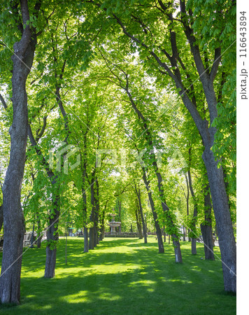 【烏克蘭】首都基輔的一座公園的森林裡,長著新鮮的綠樹,陽光透過樹林照射進來。